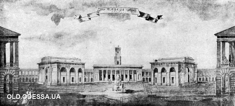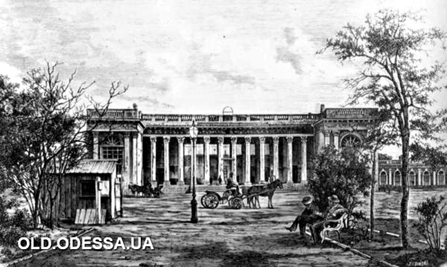 The square featured four buildings divided into 25 identical two-story sections. The trading rows were adorned with porticos, colonnades, and stone arcades. Among the first developers were well-known Odesa families of Greek merchants, such as Ioannopoulo, Serafino, Papakhaji, Ralli, and also Hryhoriy Marazli the Elder.