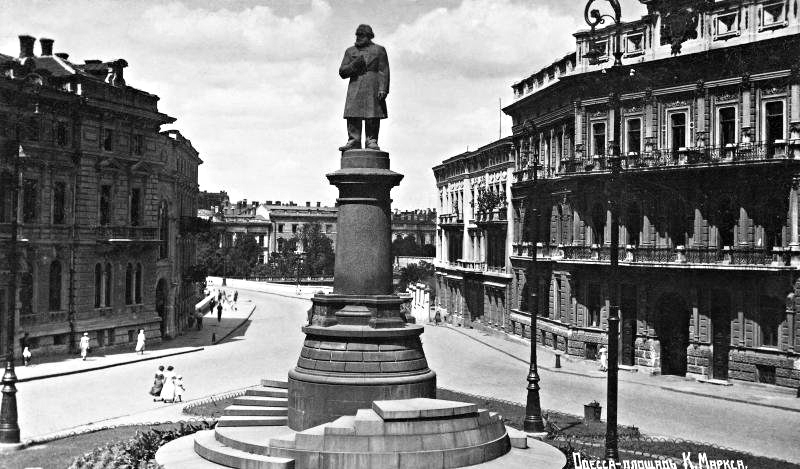 After some time, the provincial committee again solemnly opened a new monument to Karl Marx, but this time a full-length figure. As a result of a storm, the statue, made of fragile materials, fell (according to the official version). According to eyewitnesses, only the legs of the “founder of Marxism” remained on the spot. The round base of the monument then lay for many years in the port area, while the column and both versions of the monument were used for the monument to V. Lenin.