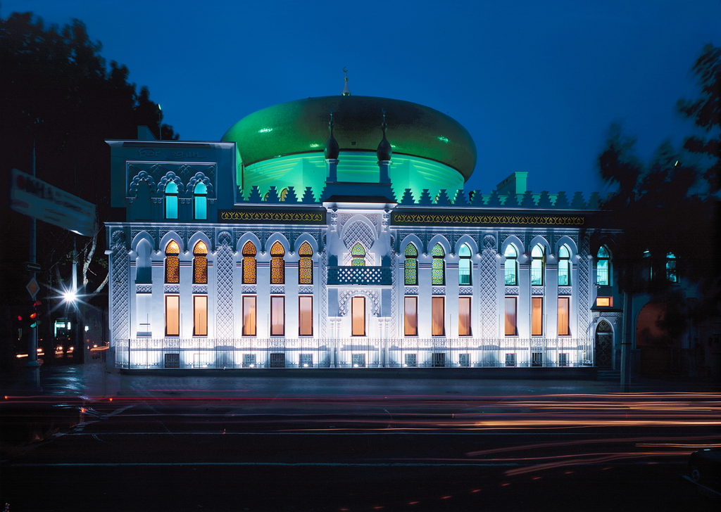El original edificio moderno del Centro Cultural Árabe en Odesa tiene todas las posibilidades de convertirse con el tiempo en un monumento arquitectónico. La gran construcción de estilo morisco fue edificada en el año 2001 con fondos del empresario árabe Adnan Kivan. La mezquita destaca notablemente en el entorno urbano y es una auténtica perla oriental de Odesa. Al entrar en la sala de oración, hombres y mujeres deben quitarse el calzado, y a las mujeres se les entregan largas túnicas con capucha. En la sala de oración, el calado ornamental de las barandillas de las escaleras y de los elementos arquitectónicos hace que el interior de la mezquita sea refinado y ligero. Aparte de varias pequeñas estanterías para libros a los lados de las salas, no hay ningún otro mobiliario. Todo el suelo está cubierto por una suave alfombra, cuyo diseño parece dividirla en cuadrados iguales que sirven como delimitación simbólica de los lugares para sentarse de los fieles. Bajo el techo se encuentra el principal elemento decorativo: una gran lámpara de araña de cristal, que brilla con cientos de luces. El Centro Cultural Árabe en Odesa está abierto a excursiones que familiarizan a los visitantes con la cultura árabe. Funcionan una escuela de lengua árabe y una biblioteca.