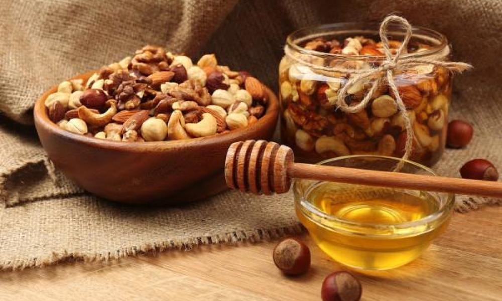 – płatki orzechowe z miodem;