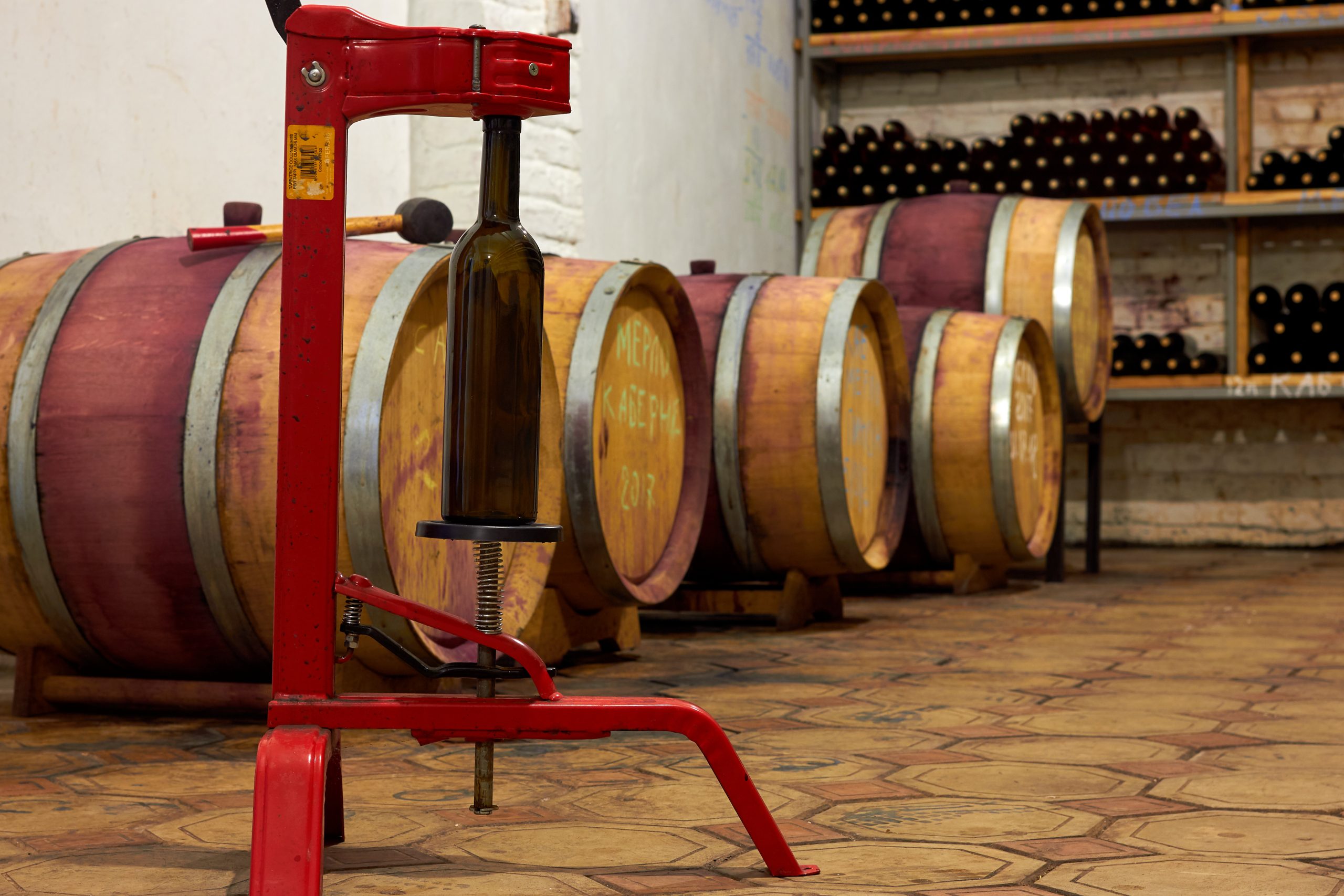 Następnie schodzimy do piwnicy winnej, gdzie zapoznają się Państwo z procesem technologicznym przetwarzania winogron, produkcji oraz butelkowania win spokojnych i musujących.